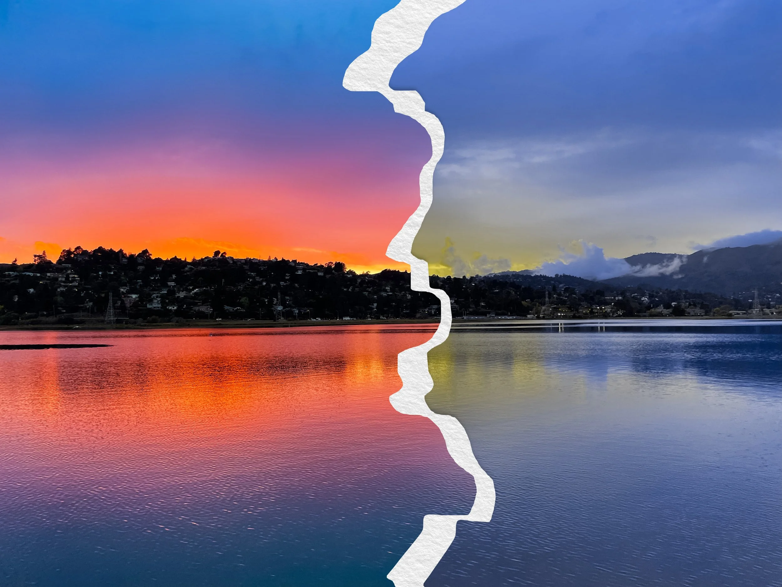 I enjoy taking photos of things in life that look nice to me like lighting, people, shadows, anything that catches my eye. I had asked my mom to stop the car because i loved how the sunset looked next to the bay. When looking at the photo its obvious its colorful but not all people will see it like this. I wanted my photo to represent what people on the colorblind spectrum would see. That's why on the other side of the rip is protonopia a form of colorblindness.