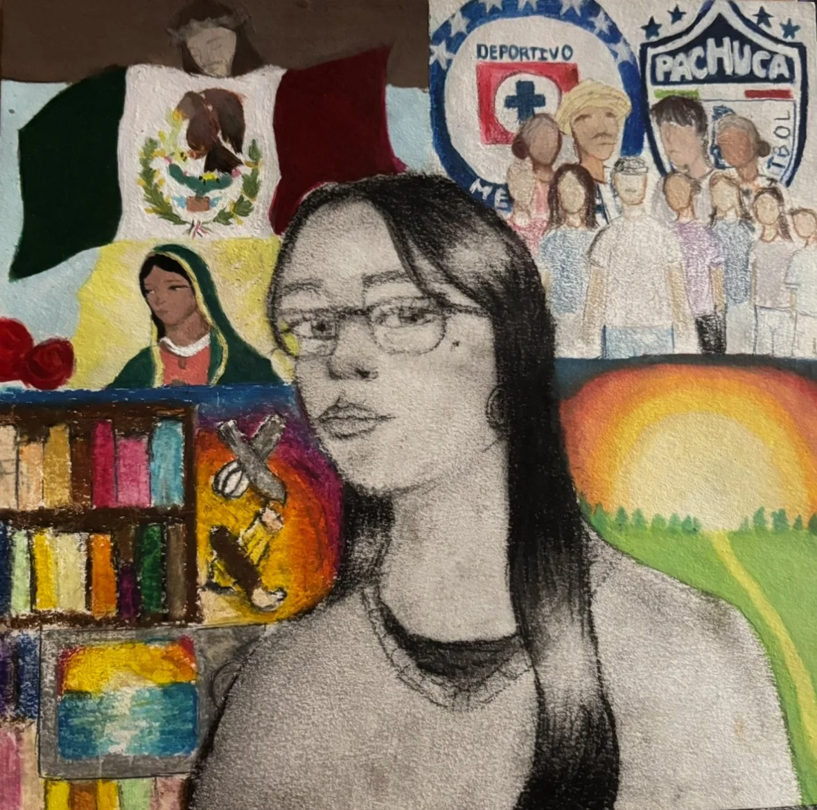 I named this piece True Nature due to the background to myself. After deep thought I was able to recognize the true elements that make me, me not only as an artists, student, daughter etc but as a whole. I realized above all not only one makes me, me but my hobbies, my culture, my loved ones, and my environment brings light into my life and have made me who I am today. At the end I decided on charcoal to be at the center of of my piece to show me in black in white but the outside parts made bringing light and life and the different mediums of watercolor, acrylic paint, color pencils, and oil pastels represents the difference in all of them yet still colorful and meaningful to me.