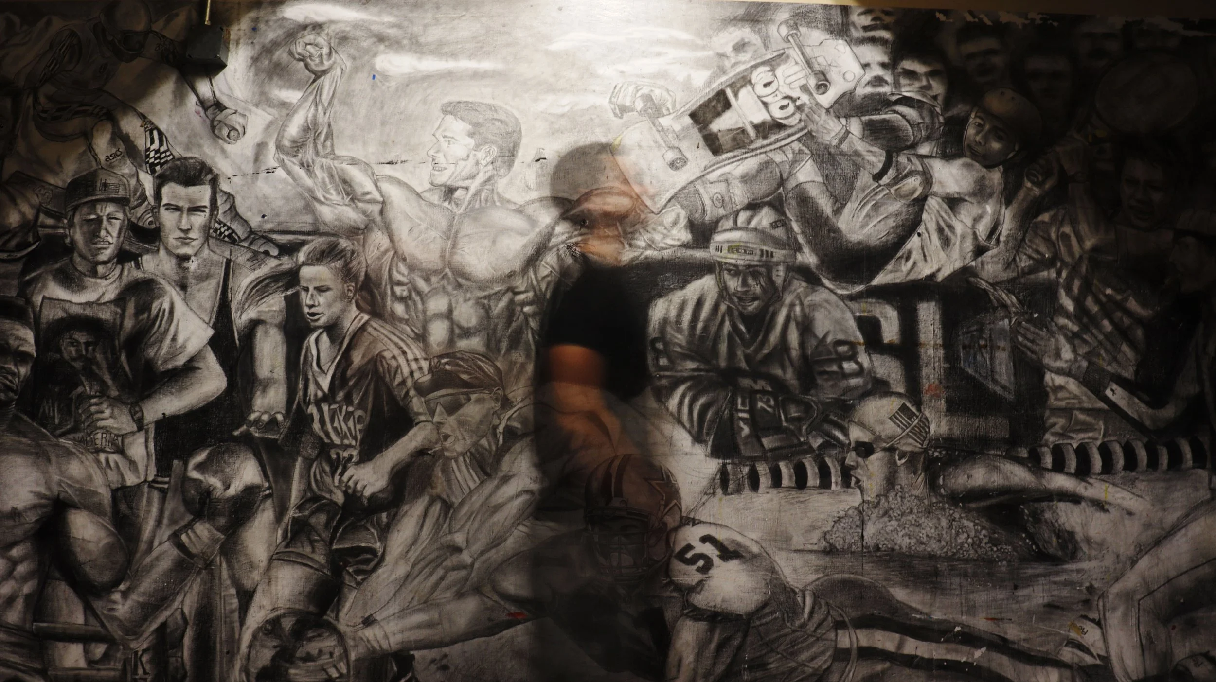 The man in the photo is an up and coming baseball player. I took this picture to show him next to the greats of other sports, envisioning a path to greatness for him.