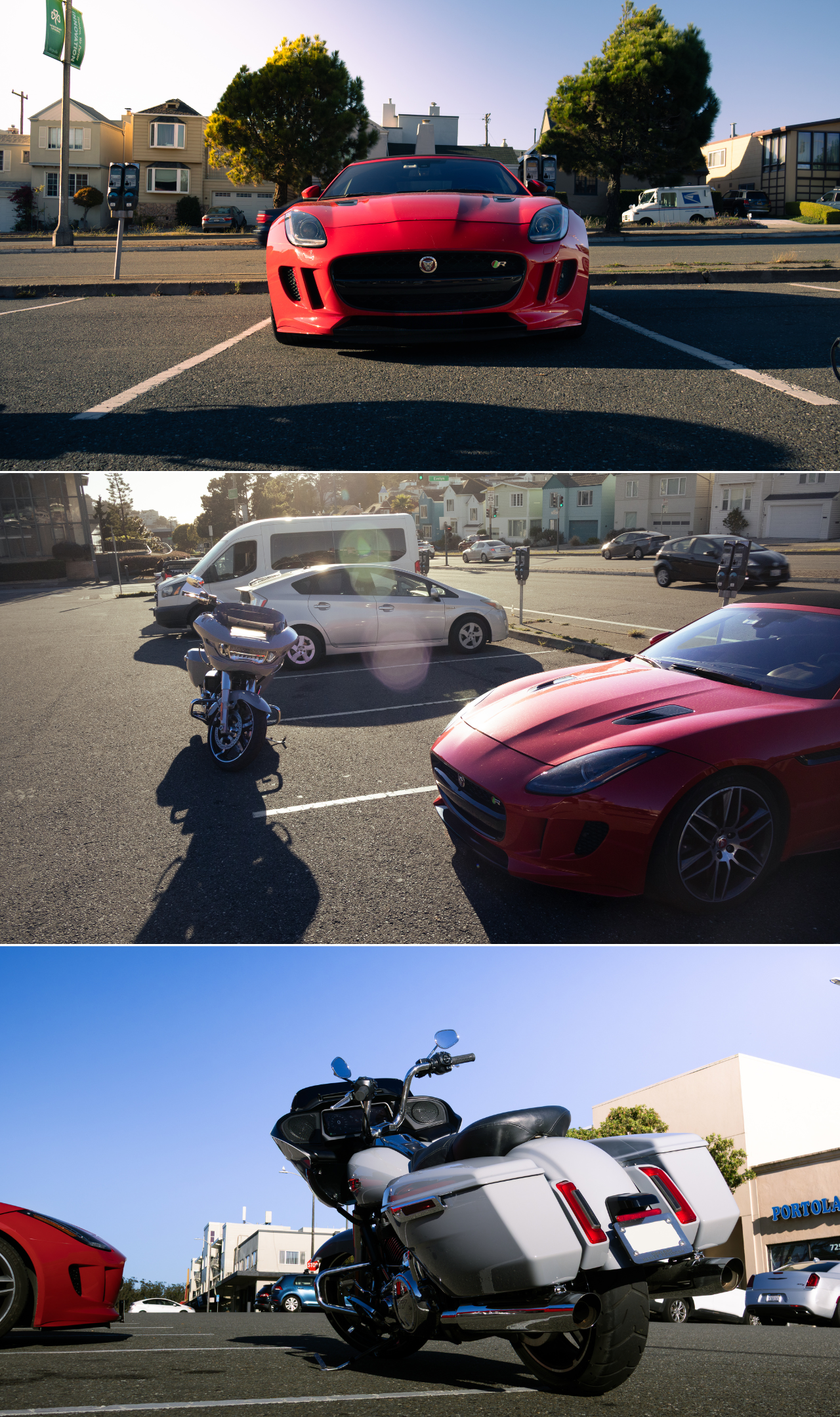 I saw two unique/ uncommon vehicles parked next to each other during golden hour and thought they looked interesting. I took photos of as many angles as I can and brought them home to edit on Adobe Lightroom. I tried to highlight the "golden hour" vibe and made the images warmer to my preference. I picked my favorite 3 images and put them together in Canva to make a collage, showing unique angles of the vehicles and showcasing the two vehicles side by side.
