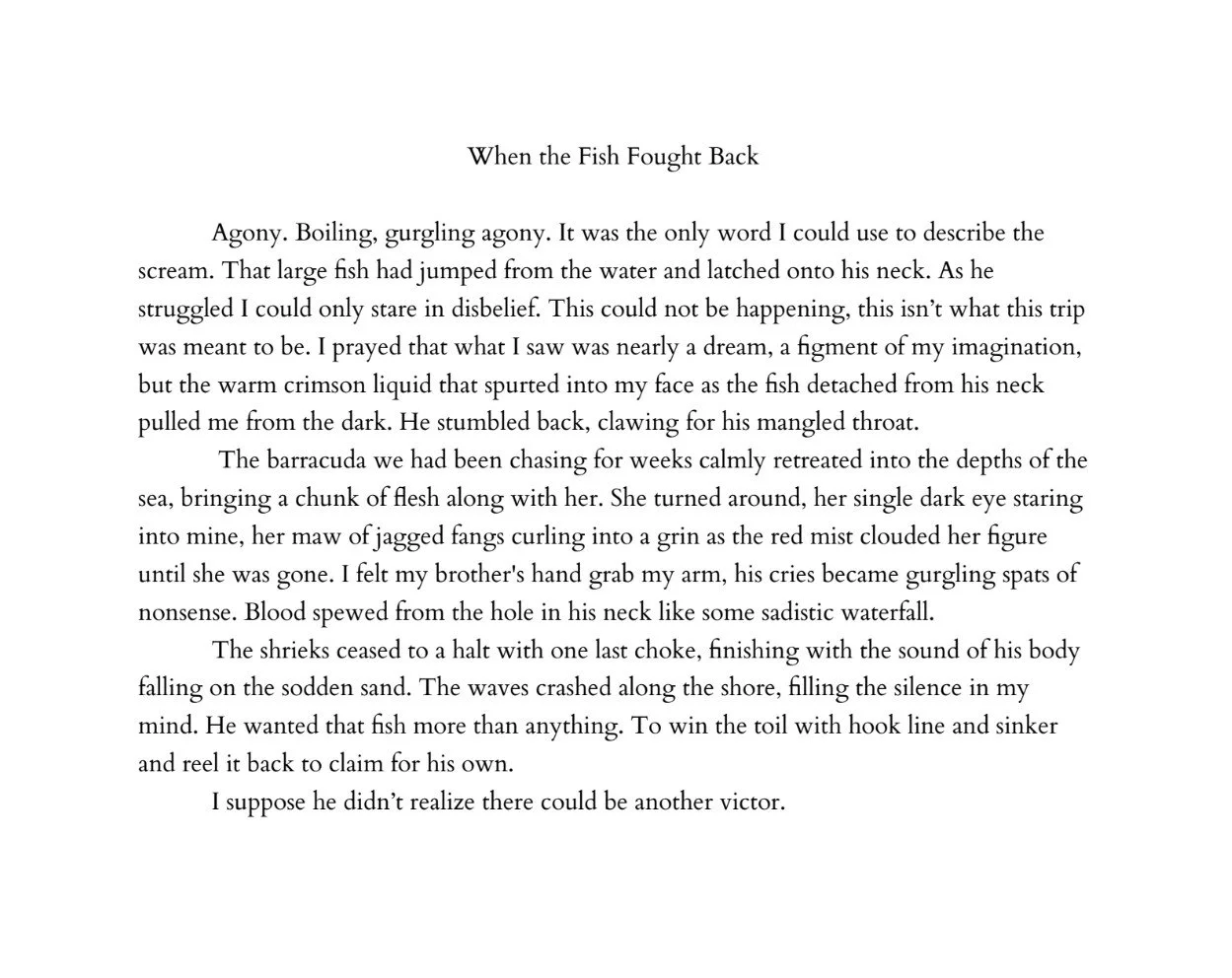 This piece is a look at the primal nature that exists within all creatures. Despite the fact humans are so advanced we forever hold this relationship with nature. That primal part of us is gone but can show its ugly face in the most scary of moments. I display that relationship between us and nature in a violent and terrifying circumstance.