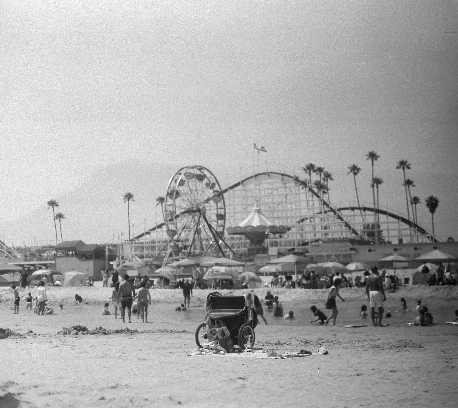 My photo was taken on a film cameraThe photo is from when took on a trip with my friends to Santa Cruz. It is the Santa Cruz Beach Board Walk from the beach point of view. I choose to use a film camera because it is a type of medium that I enjoy working with, and thought it would be fun to bring a film camera on this trip to be able to have photos like the one I'm showing.
