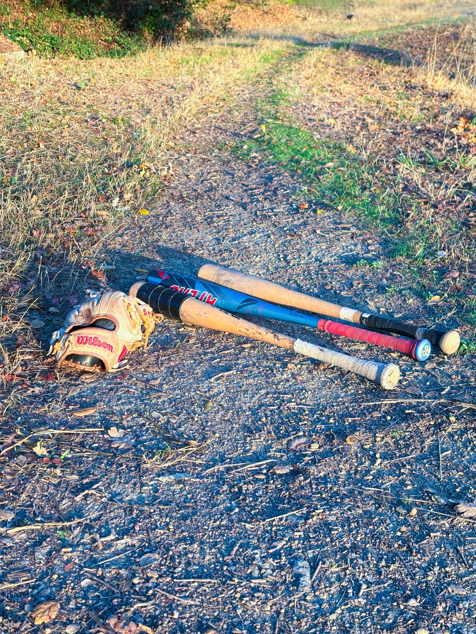 Iphone 15 Camera, my baseball bats, and my wilson A2000 glove