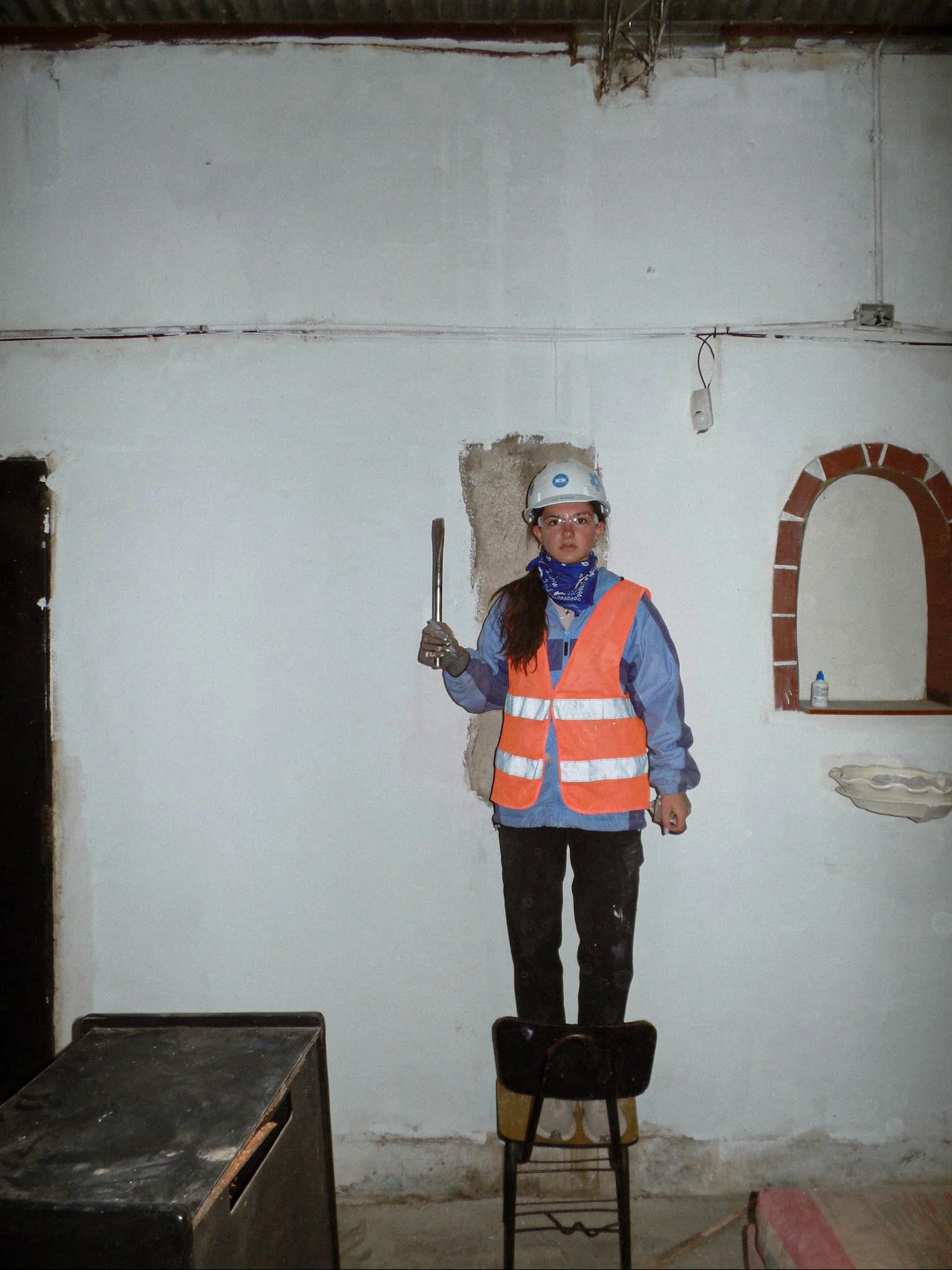 This photo uses a construction setting to represent the reality of growing up. The girl stands on a chair that was never meant to be a ladder, holding a chisel in a room that’s falling apart. That tension is the point. Adolescence often feels like trying to shape ourselves with tools we’re still learning to use, in spaces that aren’t stable. Her calm expression against the rough environment shows how growth still happens in messy, unpredictable places. Nothing in the frame is polished, and that’s important to me. I wanted to capture that awkward stage where we’re unfinished and unsure of what comes next, but still show up and do the work of finding ourselves. The image reflects that quiet persistence throughout the chaos of growing up.