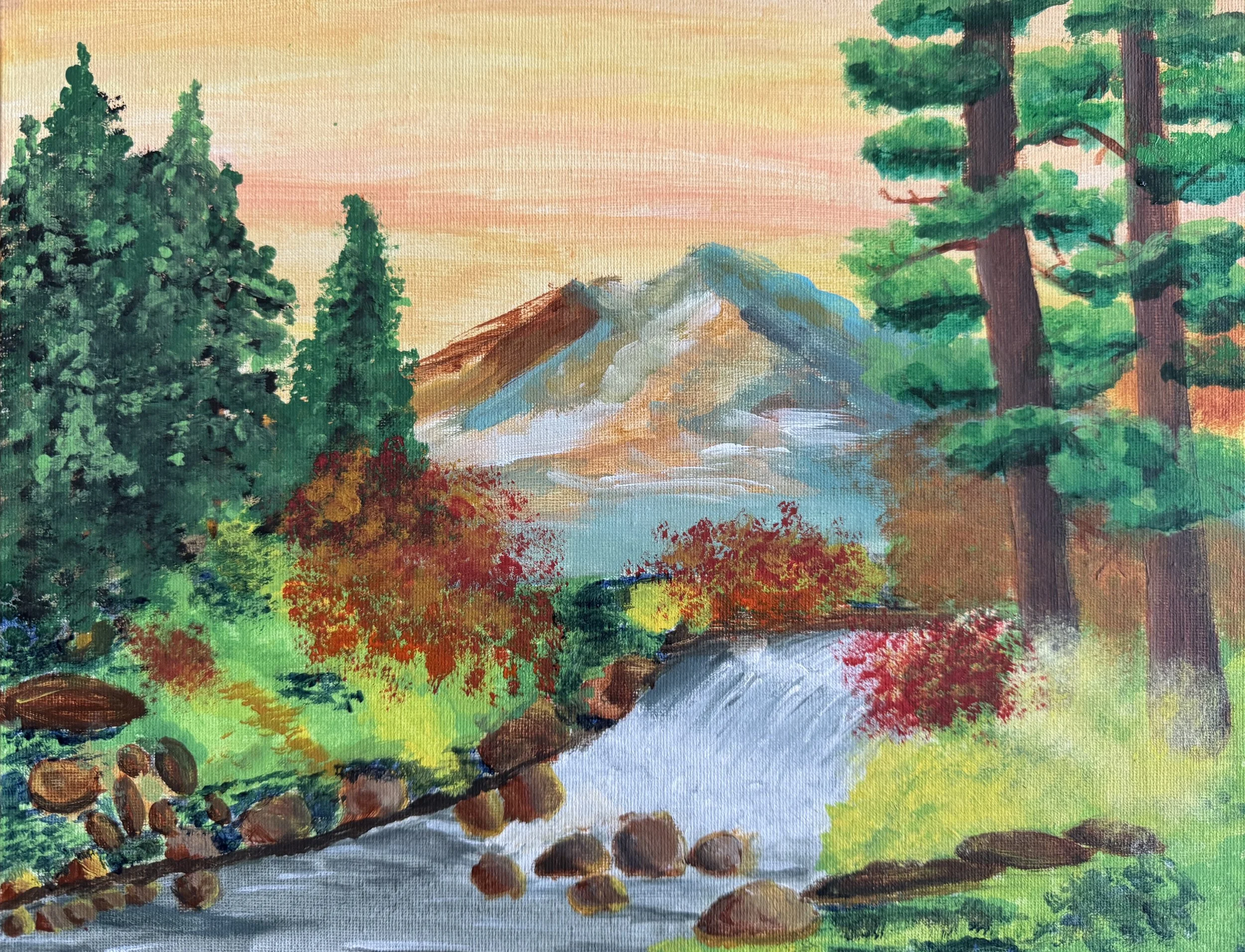 Whispers of a Peaceful Earth reflects a moment where nature speaks in quiet tones — the distant mountains, the soft rush of the waterfall, and the gentle greens all coming together in harmony. This piece invites the viewer to slow down and listen to the calm, subtle voice of the landscape, reminding us of the serenity that can be found when we pause and connect with the earth.