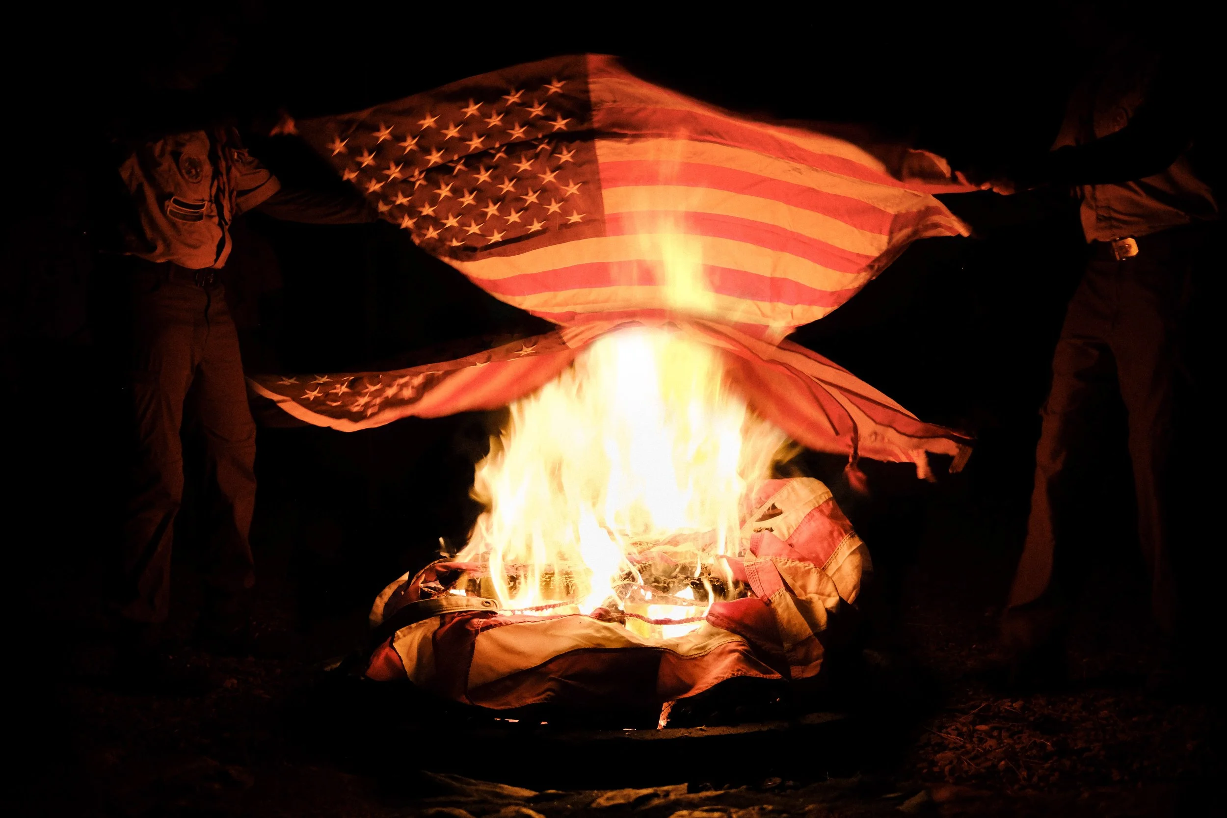 Scouting America, chartered by Congress, is one of the only organizations with an official code for flag retirement. It establishes that, “When the national flag is worn beyond repair, burn it thoroughly and completely on a modest, but blazing, fire. This should be done in a simple manner with dignity and respect.” In the Bay Area, fire risk often prevents campfires, making the opportunity to retire US flags special. This fall, I had the chance to build a retirement fire. There was a palpable sense of awe and respect from the scouts watching a sight that is so rarely witnessed. I created this image by layering three images in Photoshop. The flag is “the symbol of America, it stands for the past, present, and future of our country. It represents our people, our land, and our many ways of life,” and it was my privilege to retire it with honor.